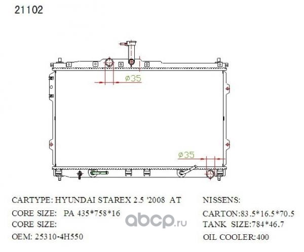 Радиатор охлаждения, Hyundai Starex 2.5 2008-