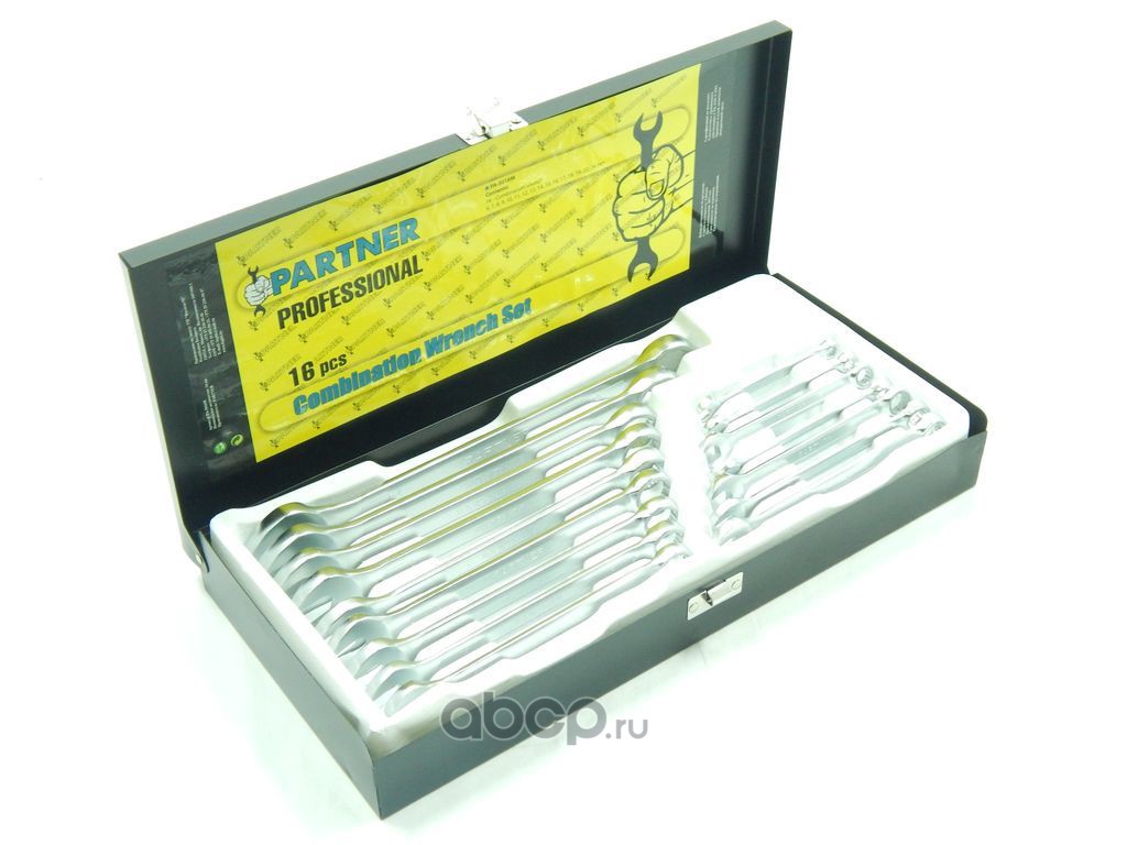 | Partner | PA3016M | Набор ключей комбинированных 16 предметов (6-19,22,24мм.), в металлическом кейсе | ||