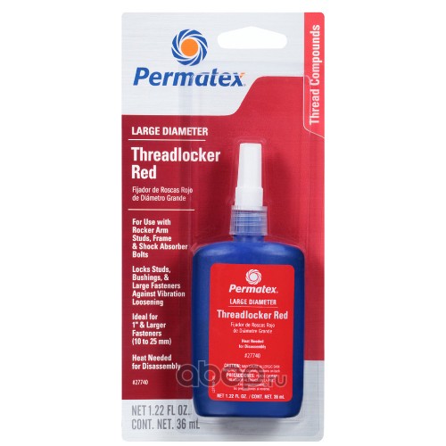| Permatex | 27740 | Фиксатор для резьбы бол. диаметров сильной фиксации красный 36мл. | ||