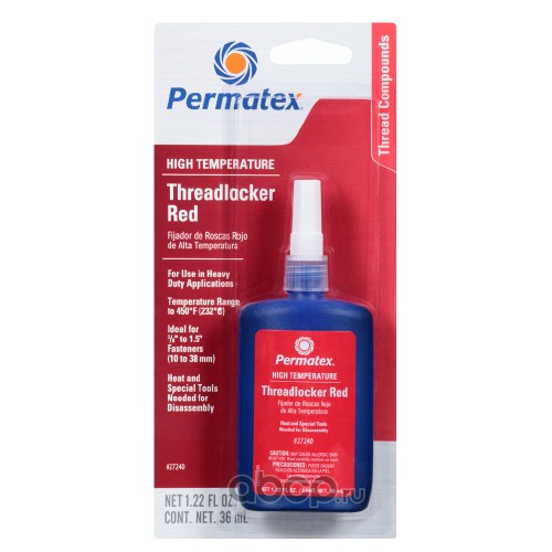 | Permatex | 27240 | Фиксатор резьбы сильной фиксации красный высокотемп 36 мл. |