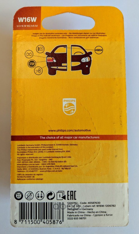 | Philips | 12067B2 | Лампа W16W 12067 12V B2 | ||