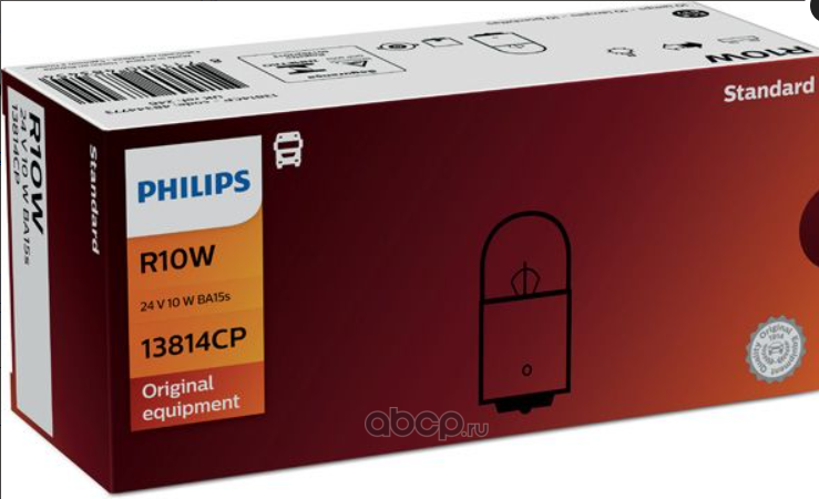| Philips | 13814CP | Лампа 24V R10W 10W 1 шт. картон | ||