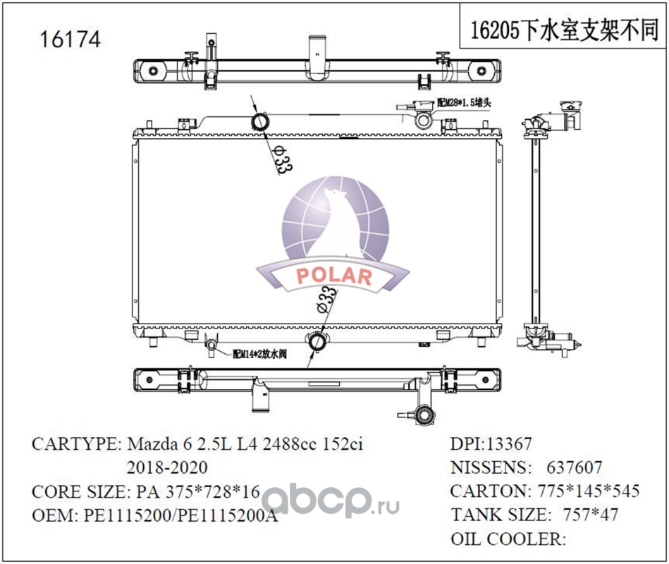 | Polar | 16174 | радиатор двигателя | ||