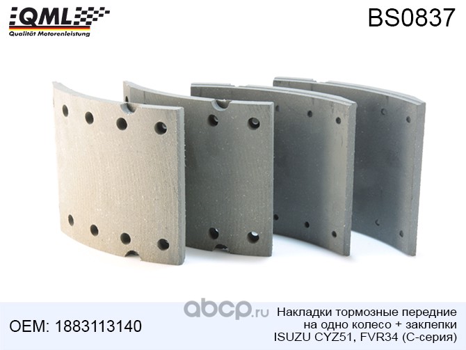 | QML | BS0837 | QML Накладки тормозные передние ISUZU CYZ51/FVR34 С-серия, на одно колесо+ заклеп. 1883113140 | ||