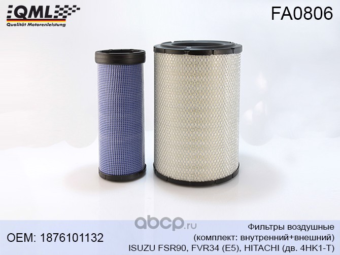 | QML | FA0806 | Фильтра воздушные (компл: внутренний+внешний) ISUZU FSR90/FVR34(Е5) HITACHI дв. 4HK1-T | ||