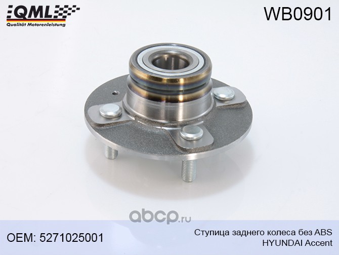 | QML | WB0901 | Ступица заднего колеса без ABS , HYUNDAI Accent 5271025001 | ||