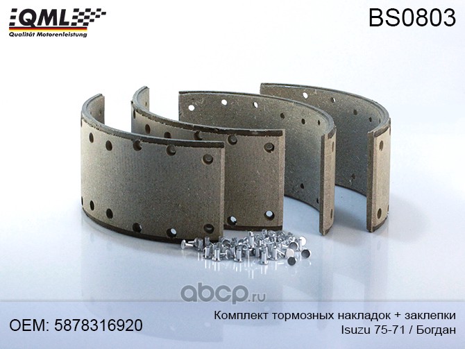 QML Комплект торм. барабанных накладок + заклепки, ISUZU 75-71Богдан(на ось-4 шт) 5878316920