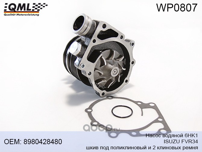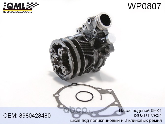 Насос водяной 6HK1 ISUZU FVR34, шкив под поликлиновый и 2 клиновых ремня