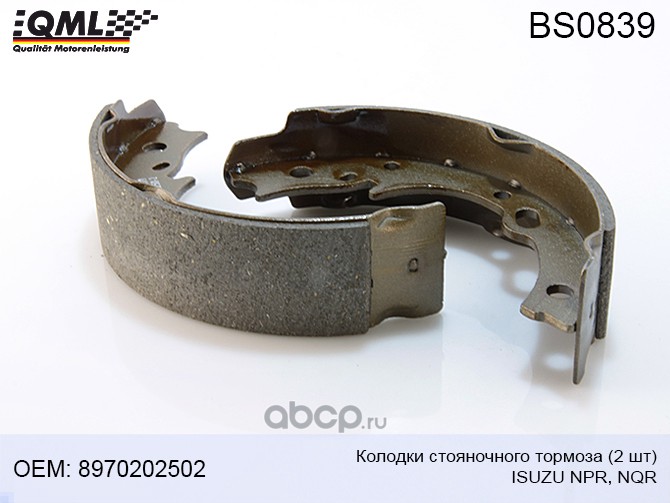 | QML | BS0839 | BS0839 Колодки стояночного тормоза (к-т 2 шт) ISUZU NPR/NQR71/75/NLR85,Hino 300 8970202502 | ||