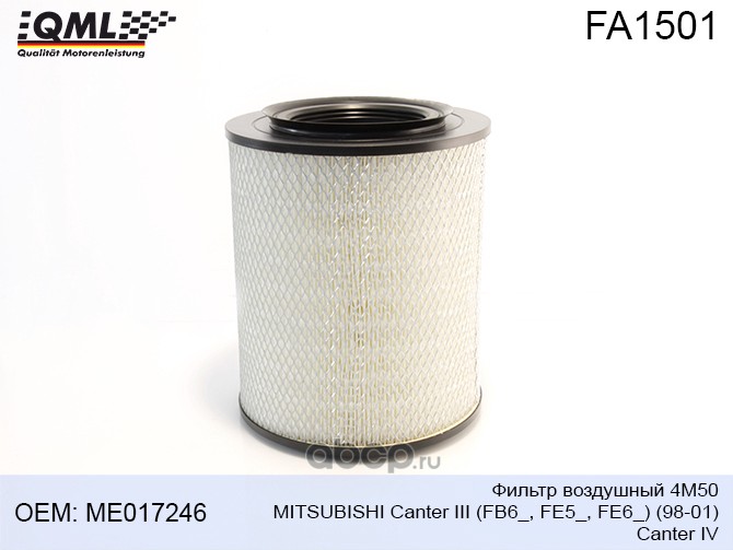 | QML | FA1501 | Фильтр воздушный 4M50 MITSUBISHI Canter III (FB6_,FE5_, FE6_) (98-01) Canter IV ME017246 |