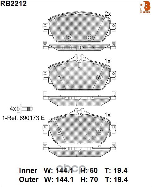 R BRAKE | RB1668 | Комплект тормозных колодок, дисковый тормоз | |