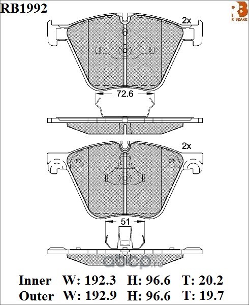| R BRAKE | RB1992 | Дисковые тормозные колодки R BRAKE | ||
