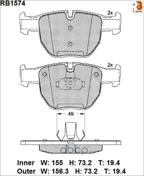 | R BRAKE | RB1574 | Дисковые тормозные колодки R BRAKE | ||