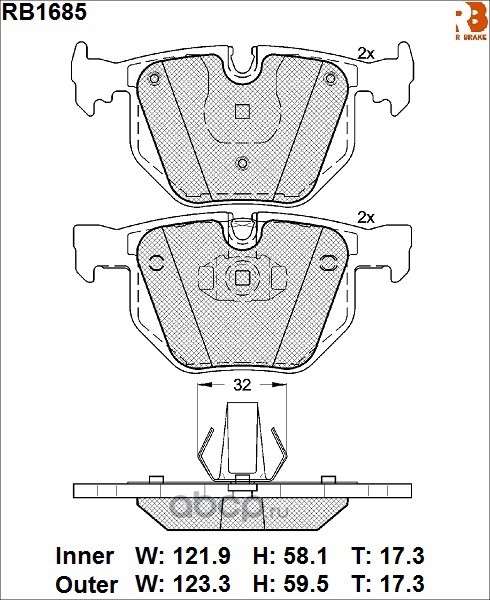 | R BRAKE | RB1685 | Дисковые тормозные колодки R BRAKE | ||