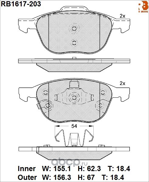 | R BRAKE | RB1617203 | Дисковые тормозные колодки R BRAKE | ||