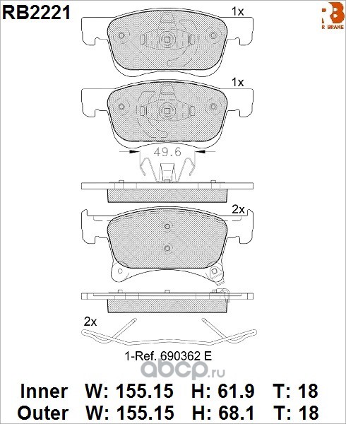 | R BRAKE | RB2221 | Дисковые тормозные колодки R BRAKE | ||