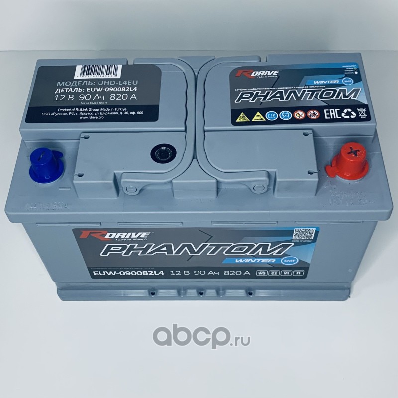 | RDrive | EUW090082L4 | Батарея аккумуляторная 90А/ч 820А обратная полярн. стандартные (Европа) клеммы | ||