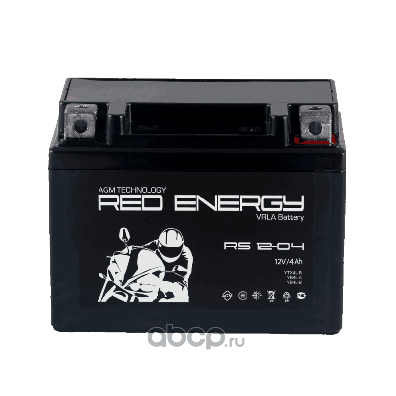 RED ENERGY RS1204 Батарея аккумуляторная 4А/ч 50А обратная полярн. болтовые мото клеммы
