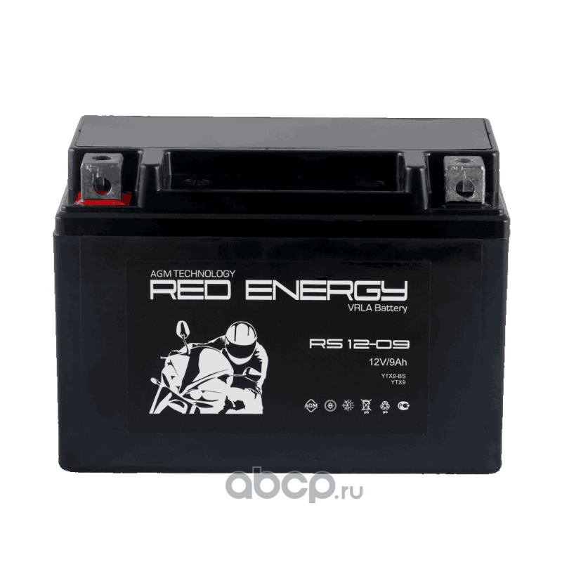 RED ENERGY RS1209 Батарея аккумуляторная 9А/ч 100А прямая полярн. болтовые мото клеммы