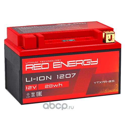 RED ENERGY LIION1207 Батарея аккумуляторная 7А/ч 130А прямая полярн. болтовые мото клеммы