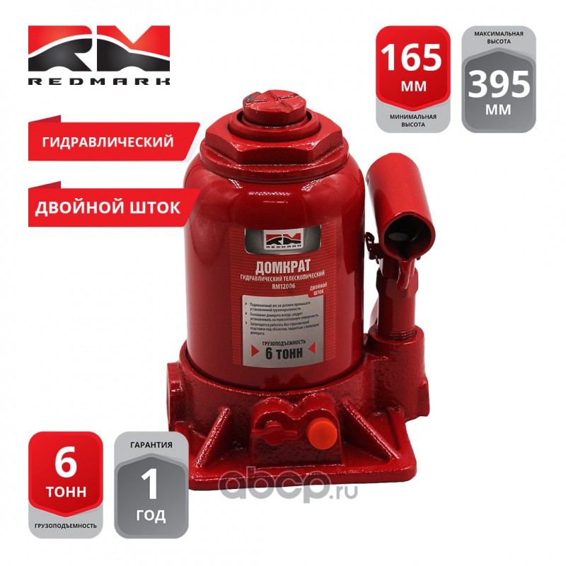 | REDMARK | RM12006 | Домкрат гидравлический 6т двухштоковый (высота мин/макс 165/395мм) | ||