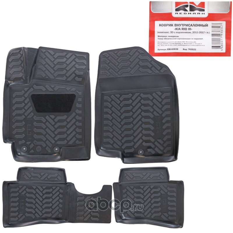 | REDMARK | RM60838 | Коврики внутрисалонные Rio III (2011-17) кт. (3D с подпятником) (крепеж) (полиуретан) | ||