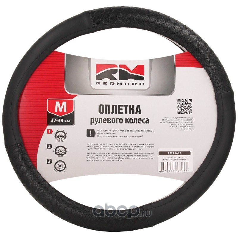 | REDMARK | RM78023 | Оплетка руля экокожа, М размер, спонж, черный, красный ромб | ||