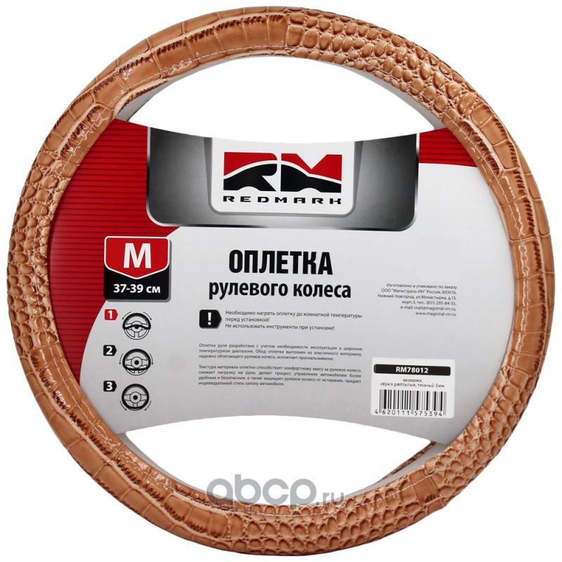 | REDMARK | RM78012 | Оплетка руля экокожа, М размер, серия рептилия темный беж | ||