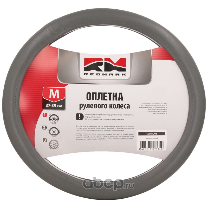 | REDMARK | RM78003 | Оплетка руля экокожа, М размер, серый | ||
