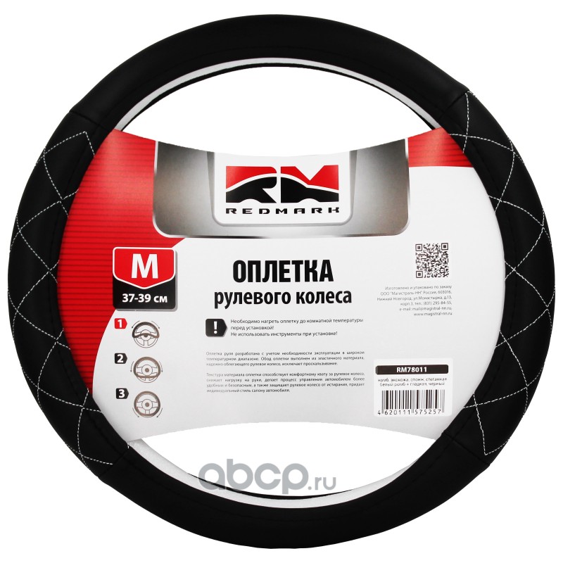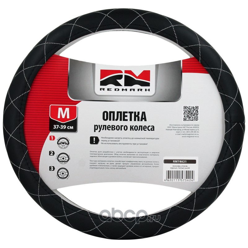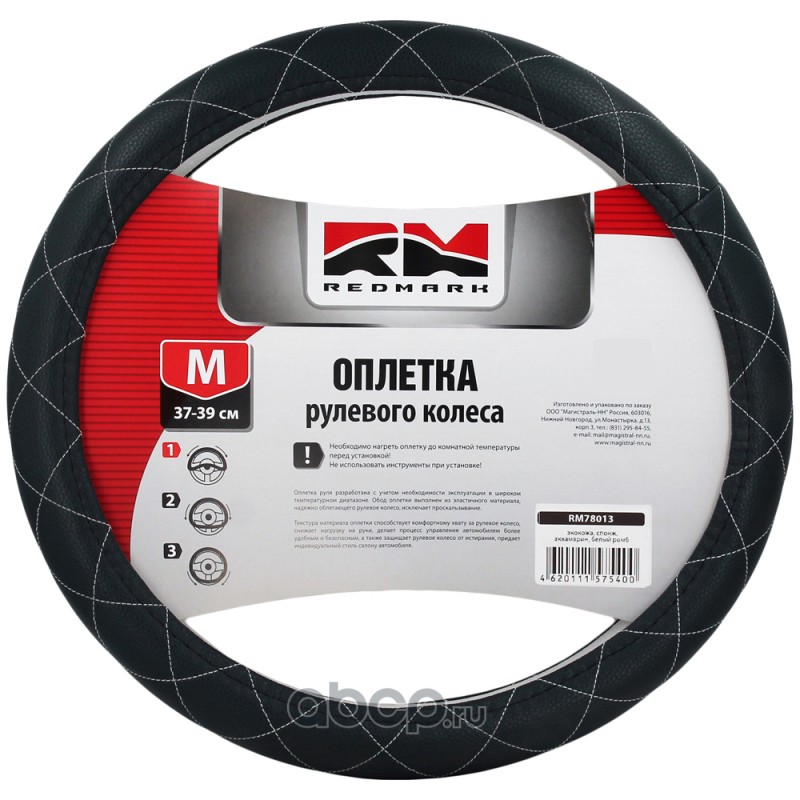 | REDMARK | RM78021 | Оплетка руля экокожа, М размер, спонж, черный, белый ромб | ||