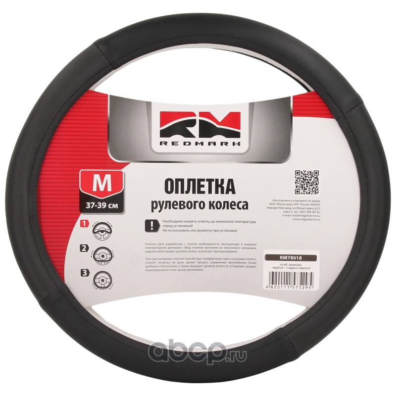 | REDMARK | RM78018 | Оплетка руля комб. экокожа, М размер, карбон-глад.черный | ||