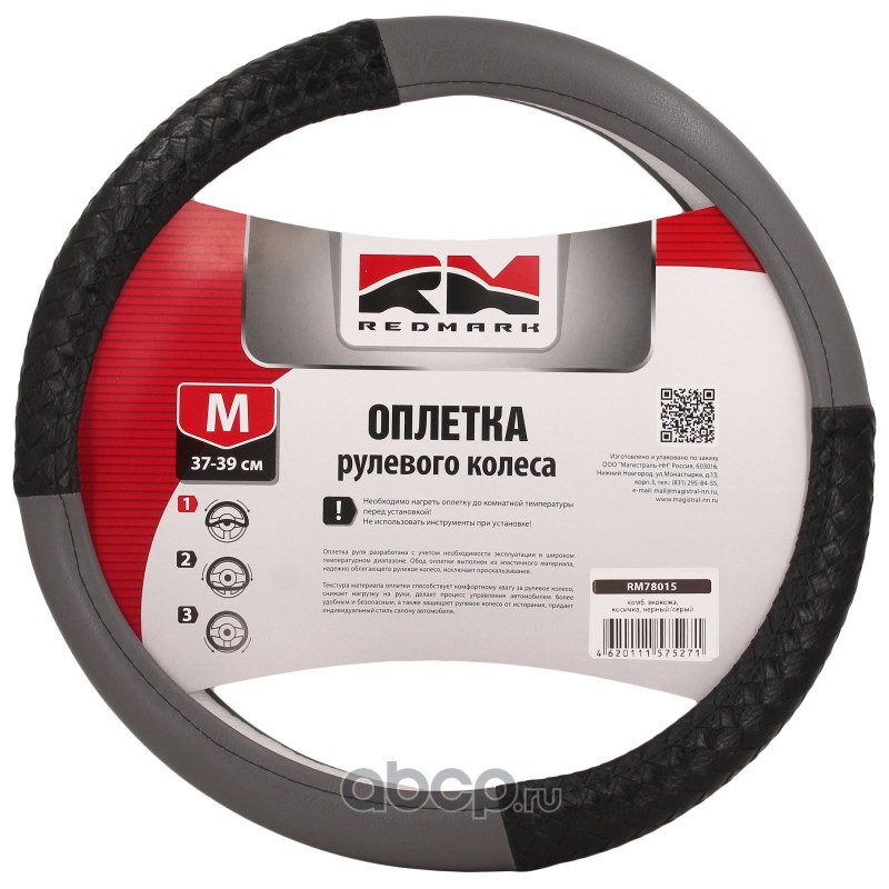 | REDMARK | RM78015 | Оплетка руля комб. экокожа, М размер, косичка.черн./серый | ||