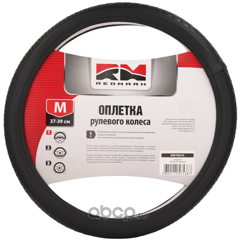 | REDMARK | RM78010 | Оплетка руля экокожа, М размер, косичка, черный | ||