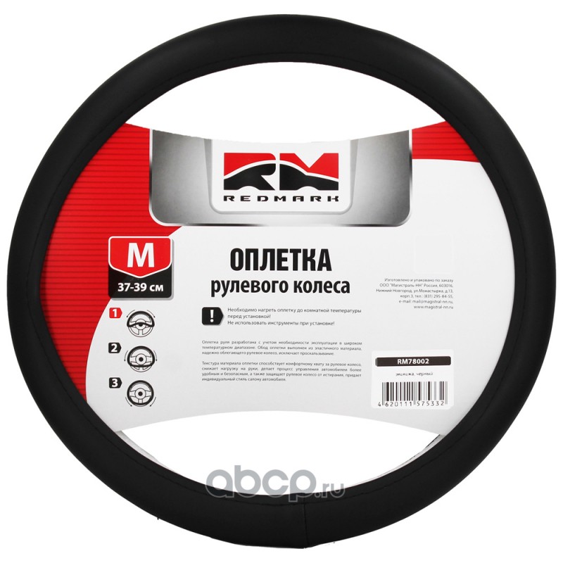 | REDMARK | RM78002 | Оплетка руля экокожа, М размер, черный | ||