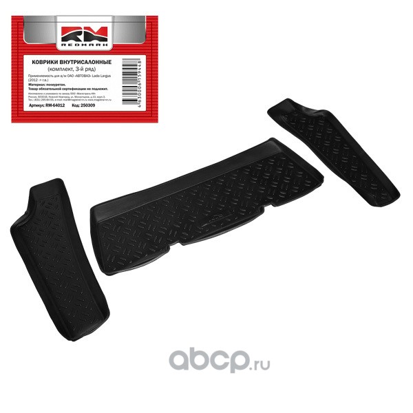 | REDMARK | RM64012 | Коврики внутрисалонные Largus 2012-> кт. (3-й ряд) (полиуретан) | ||