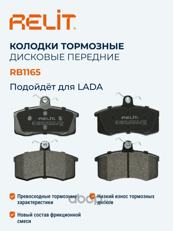 | RELIT | RB1165 | Колодки тормозные дисковые передние для а/м ВАЗ 2108 RELIT керамические | ||