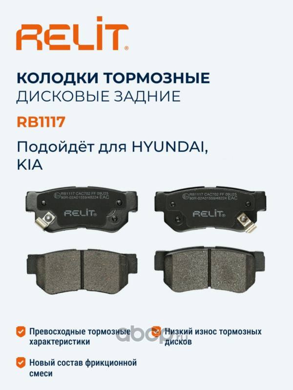 | RELIT | RB1117 | Колодки тормозные дисковые задние керамические RELIT RB1117 | ||