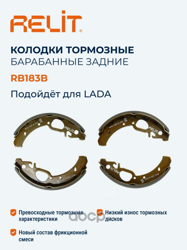 | RELIT | RB183B | Колодки тормозные барабанные задние для а/м ВАЗ 2108 RELIT керамические | ||
