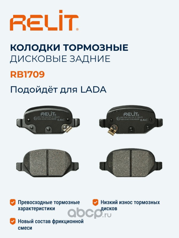 | RELIT | RB1709 | Колодки тормозные дисковые задние для а/м ВАЗ 1118/2190 Sport, LADA Vesta RELIT керамические | ||