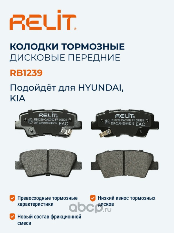 | RELIT | RB1239 | Колодки тормозные дисковые задние керамические RELIT RB1239 | ||