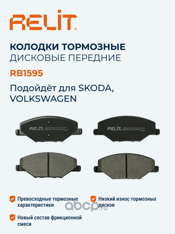 | RELIT | RB1595 | Колодки тормозные дисковые передние керамические RELIT RB1595 | ||