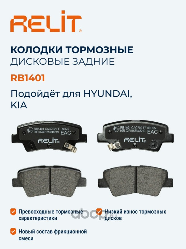 | RELIT | RB1401 | Колодки тормозные дисковые задние керамические RELIT RB1401 | ||