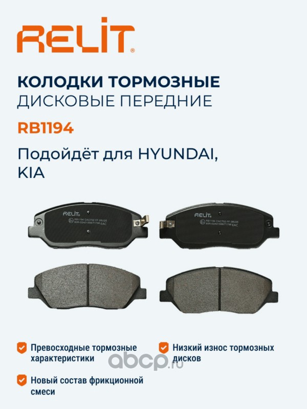 | RELIT | RB1194 | Колодки тормозные дисковые передние керамические RELIT RB1194 | ||