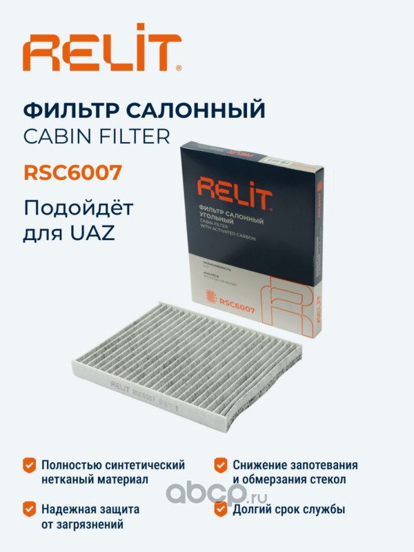 | RELIT | RSC6007 | Фильтр салона для а/м УАЗ Патриот (с 2016 г.) угольный ""RELIT | ||