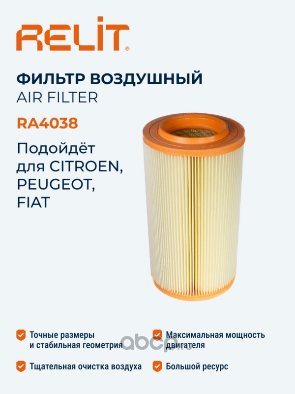 | RELIT | RA4038 | Фильтр воздушный RELIT RA4038 | ||
