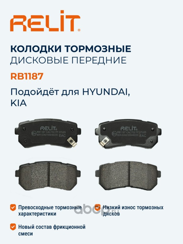 | RELIT | RB1187 | Колодки тормозные дисковые задние керамические RELIT RB1187 | ||