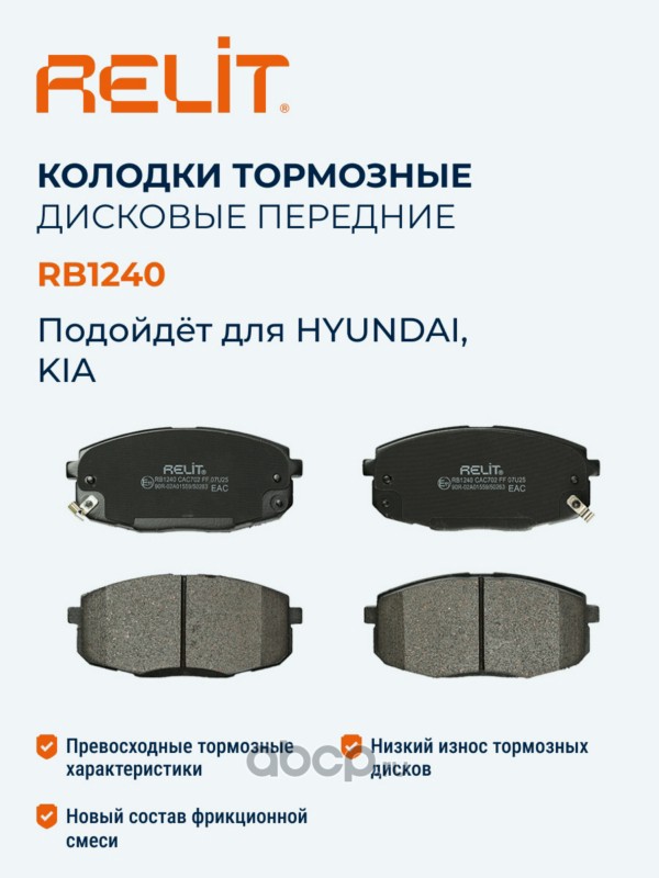 | RELIT | RB1240 | Колодки тормозные дисковые передние керамические RELIT RB1240 | ||