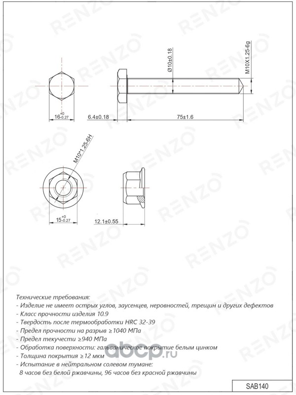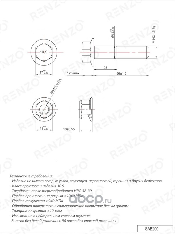 RENZO SAB140 Болт крепления амортизатора