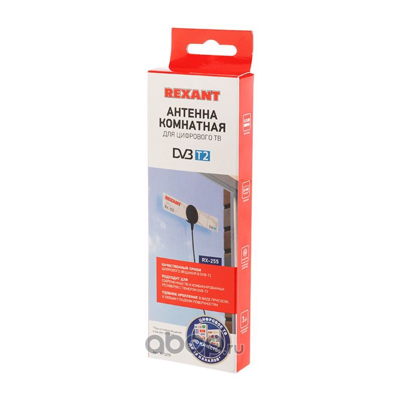 ТВ антенна комнатная для цифрового телевидения DVB-T2 на присоске, RX-255 REXANT