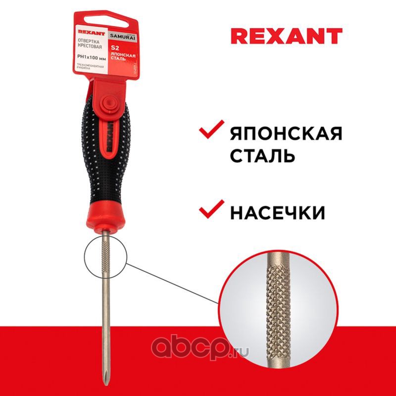 Отвертка крестовая PH 1х100 мм, трехкомпонентная рукоятка, сталь S2 REXANT